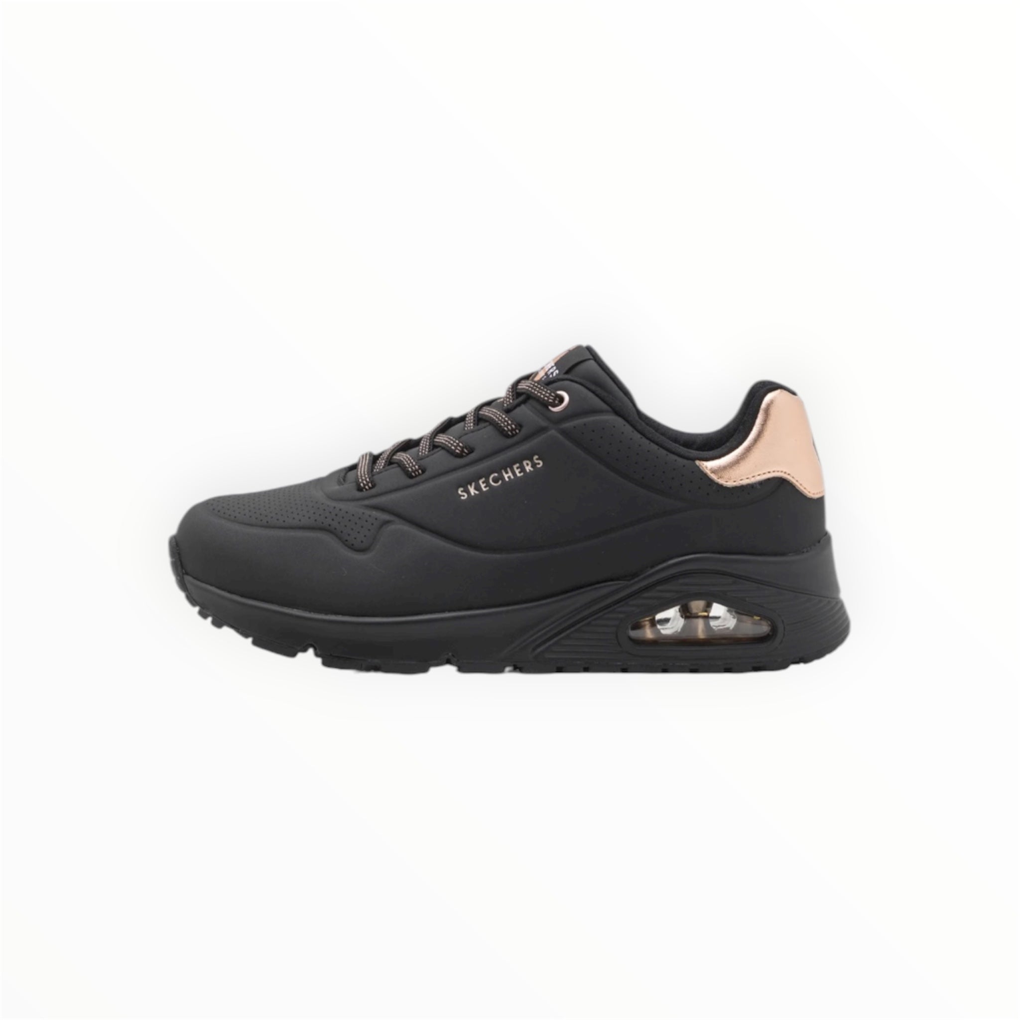 Le Skechers 155196 BLK sono sneakers dal design moderno e minimal, perfette per chi desidera una scarpa nera versatile, comoda e adatta a ogni occasione.