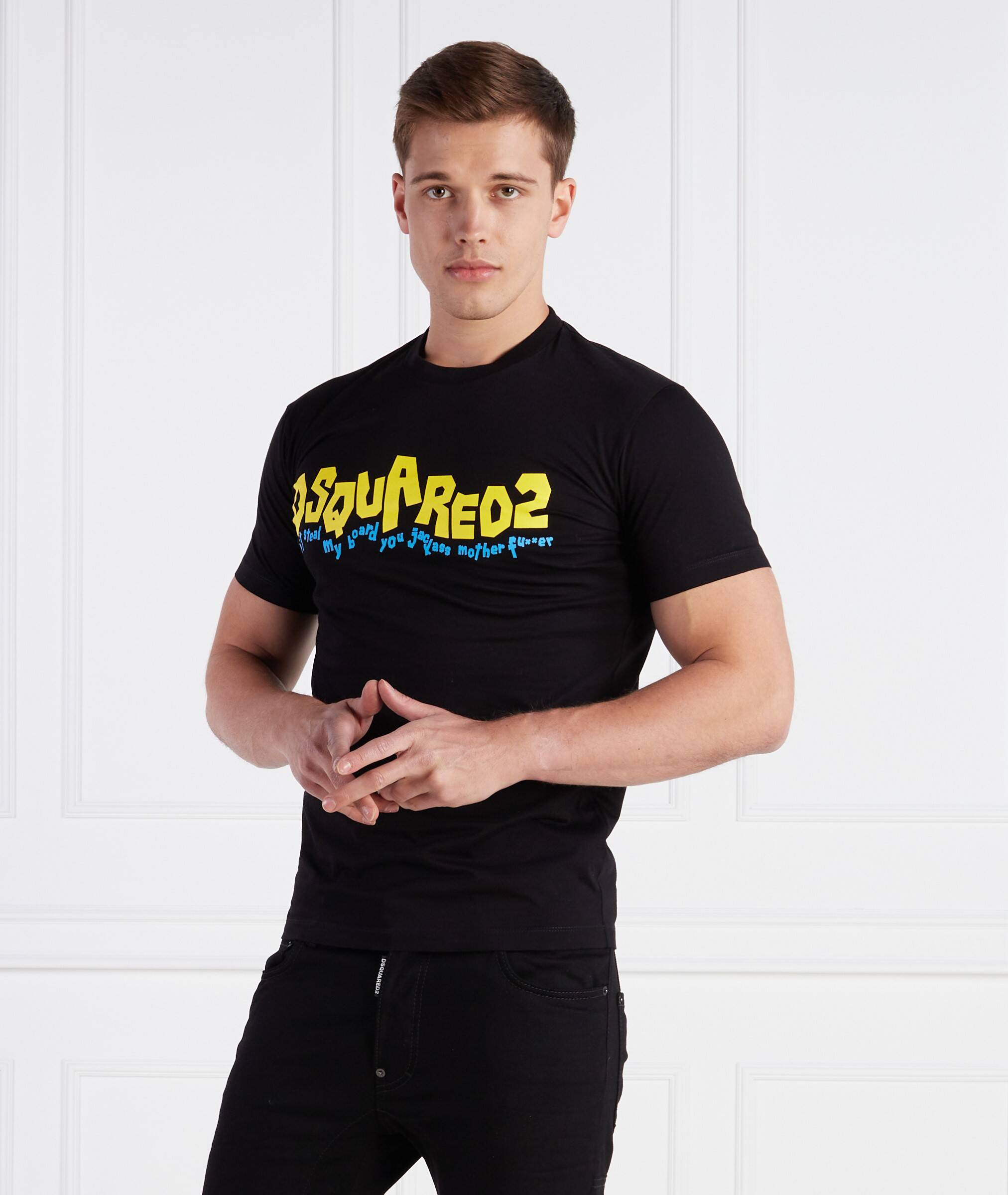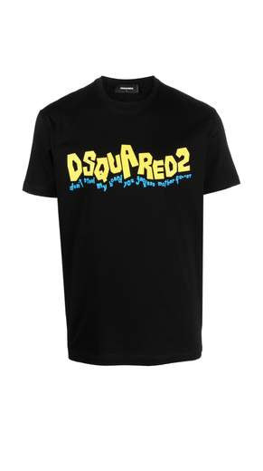 T-shirt DSQUARED2 con stampa "DSQUARED2" di colore nero a contrasto in petto, girocollo