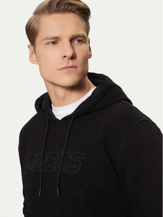 Felpa Cappuccio Guess Aldwin New da Uomo - Nero, felpa con cappuccio in jersey di cotone elasticizzato, tasca canguro, polsini e orlo con cordino elastico, patch logo sul davanti