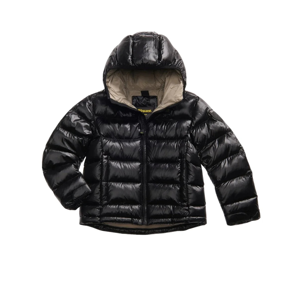 piumino Blauer in nylon dalleffetto quadrettato e impunturato a righe orizzontali.