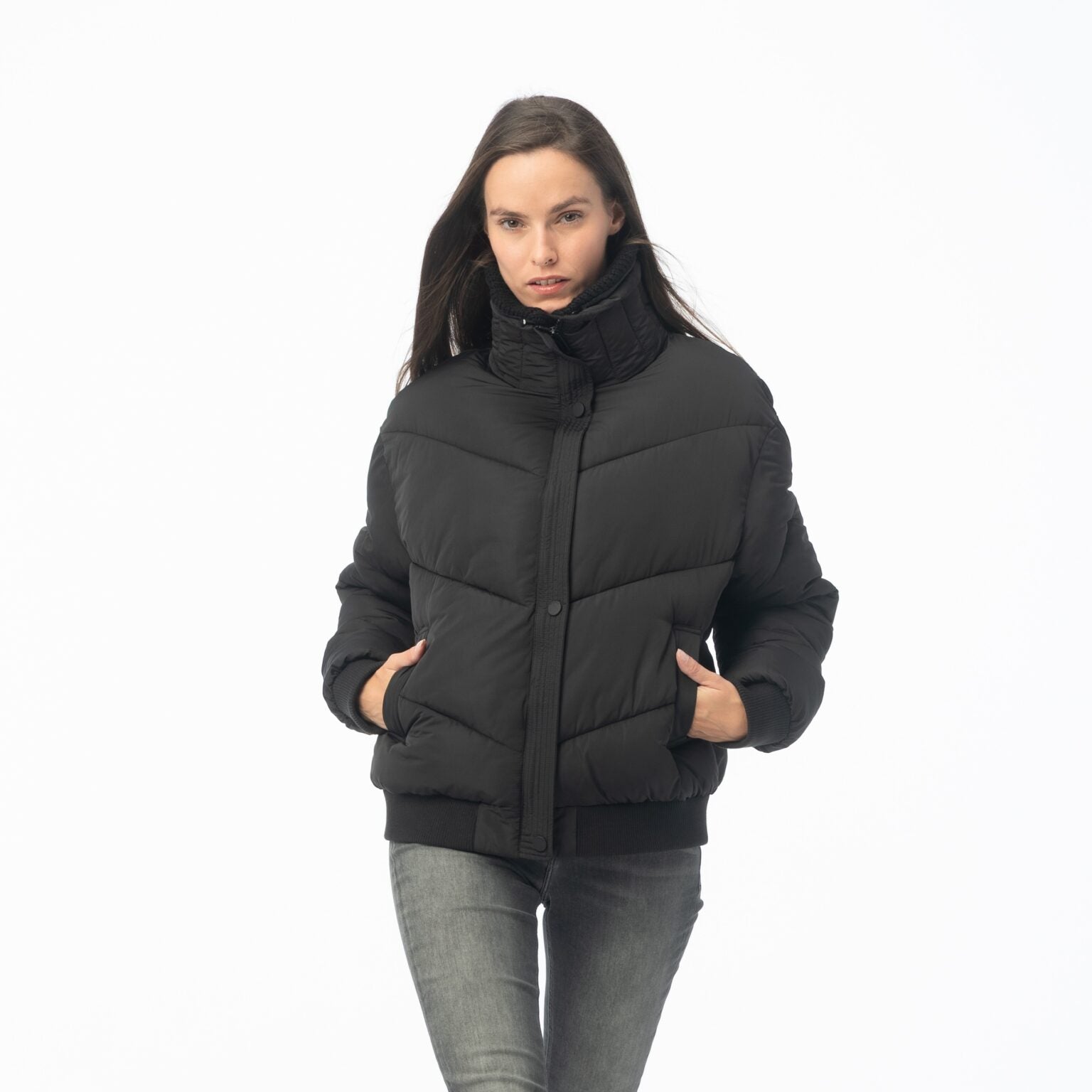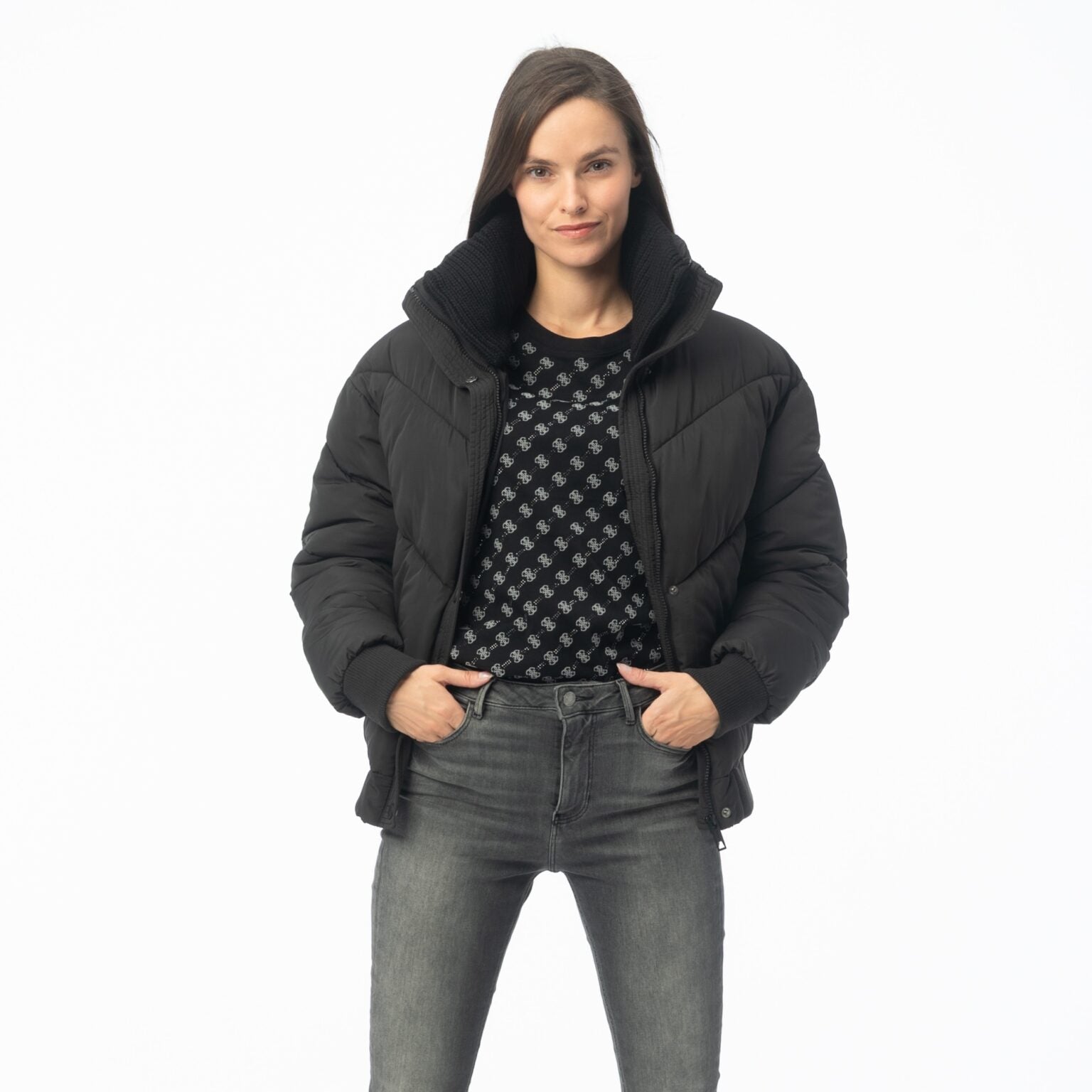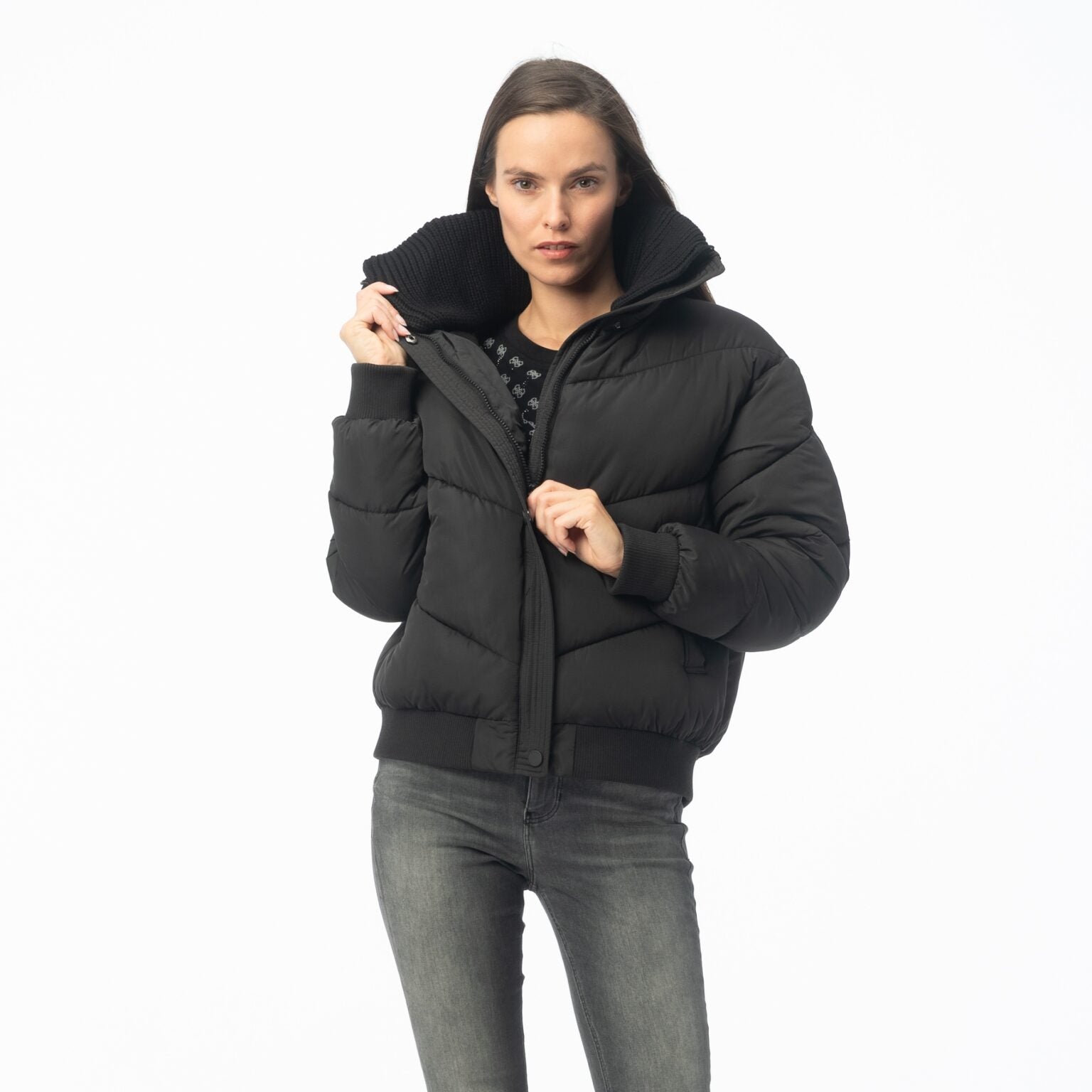 Il piumino Dora con colletto in maglia staccabile è l'opzione perfetta per le donne che attribuiscono importanza all'eleganza,