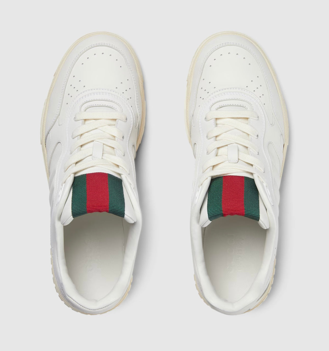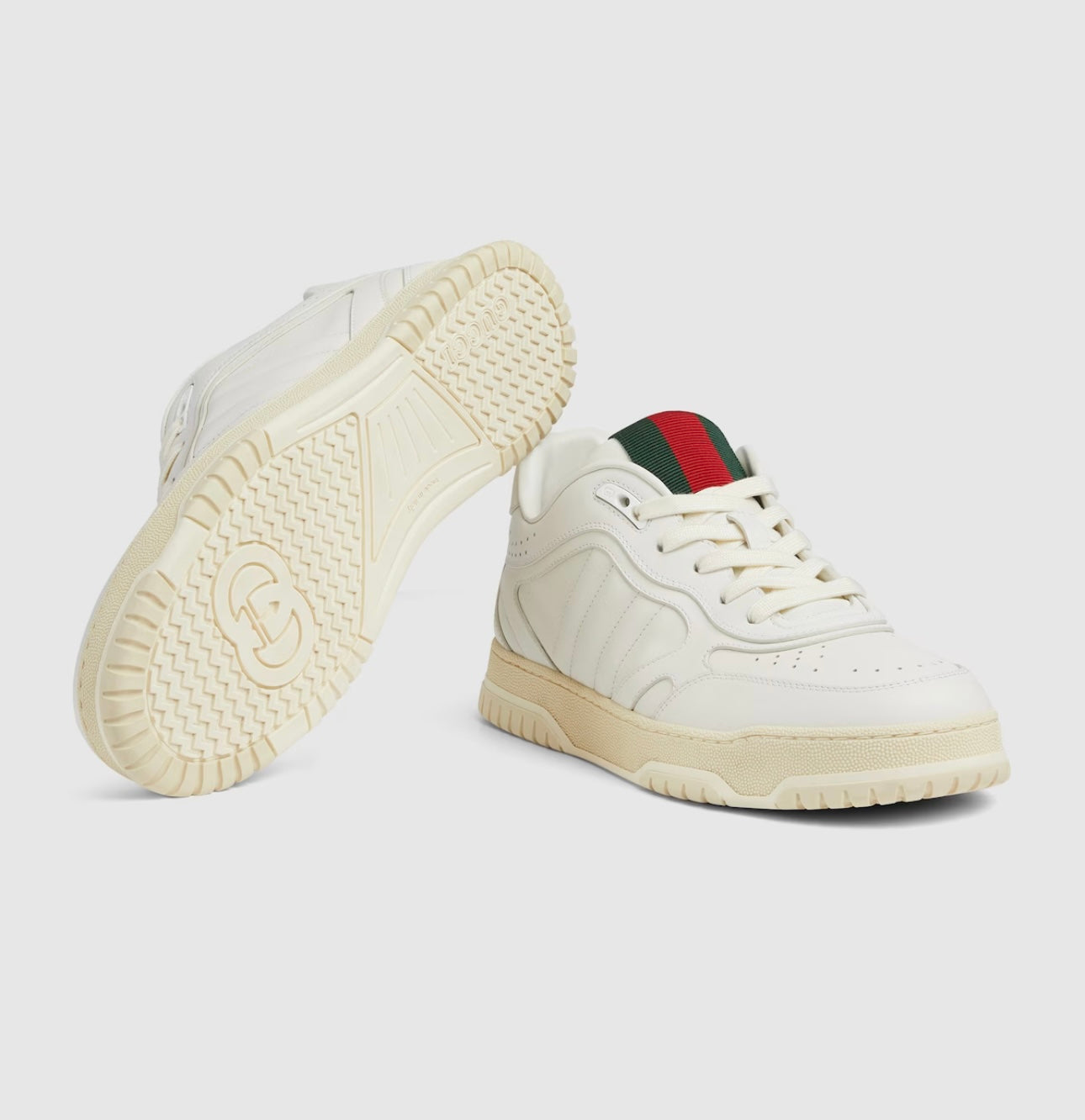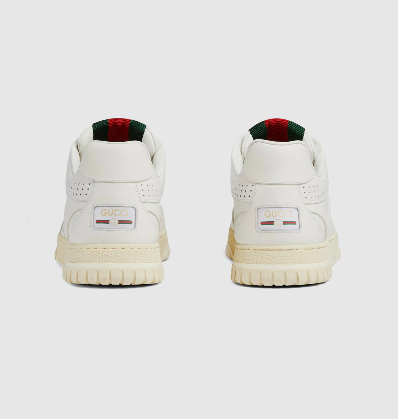 Le sneaker Re-Web presentano una silhouette contemporanea resa più vivace dalle storiche righe Gucci. Questo modello è realizzato in pelle bianca. Caratterizzato da numerosi dettagli, questo nuovo modello ruba la scena grazie al vivace nastro Web verde e rosso sulla linguetta.