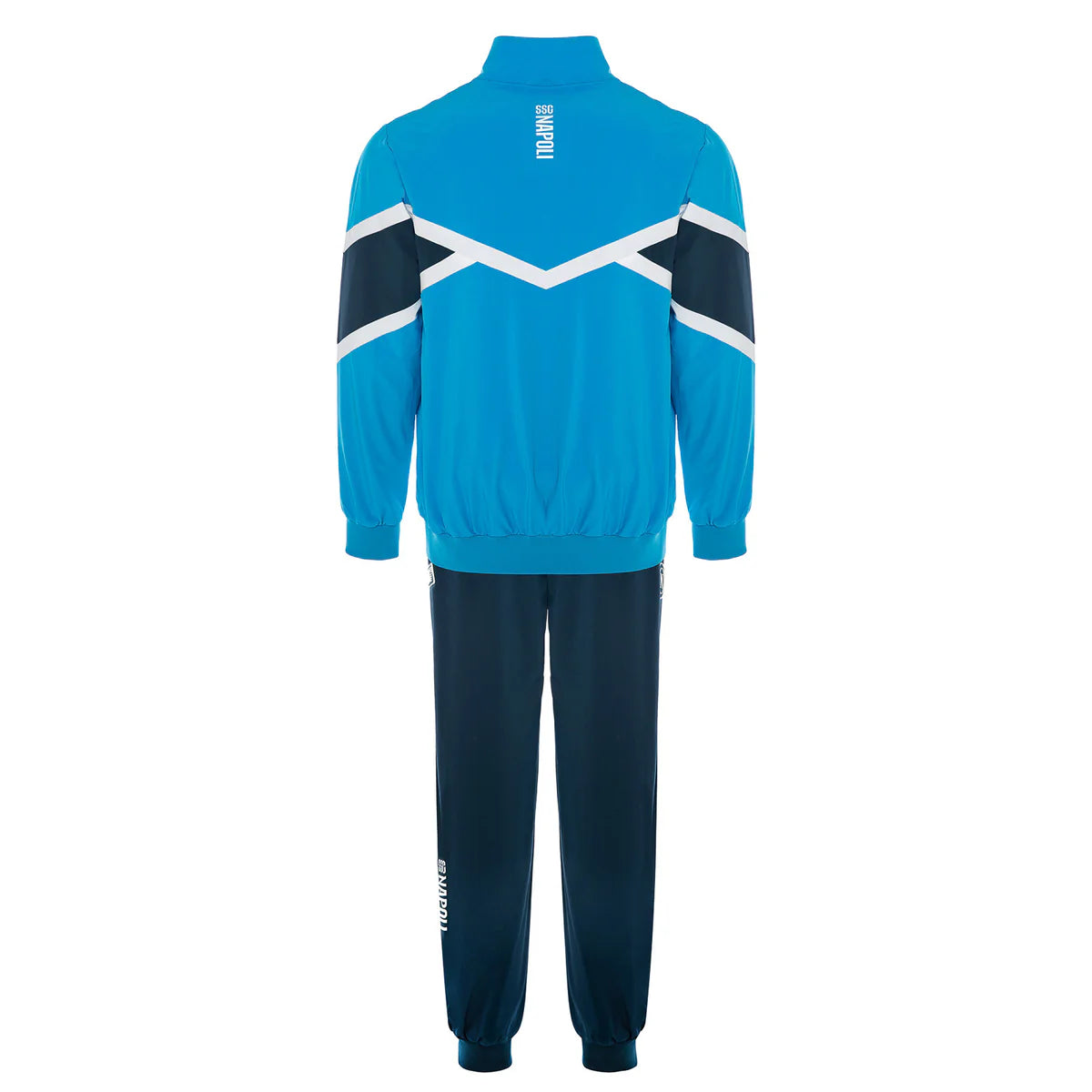 La tuta in poliestere elasticizzato SSC Napoli è un capo di abbigliamento sportivo elegante e funzionale, progettato per fan e atleti che vogliono mostrare con orgoglio la loro affiliazione con la squadra.