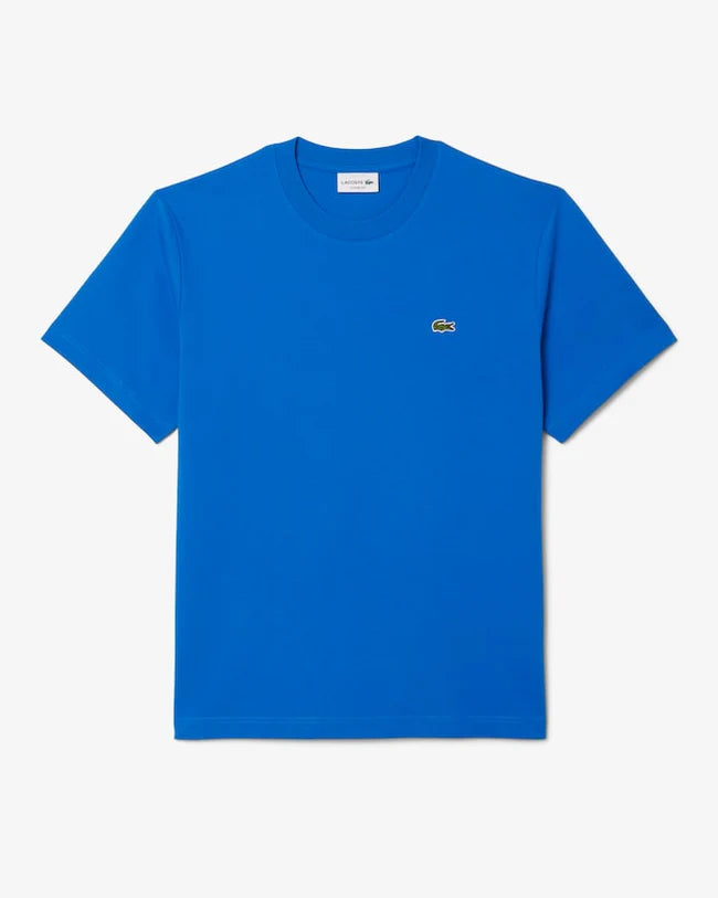 Una nuova versione dell’intramontabile t-shirt Lacoste in comodissimo tessuto di media pesantezza. Un must-have versatile che sta bene con tutto, completato da un iconico coccodrillo.