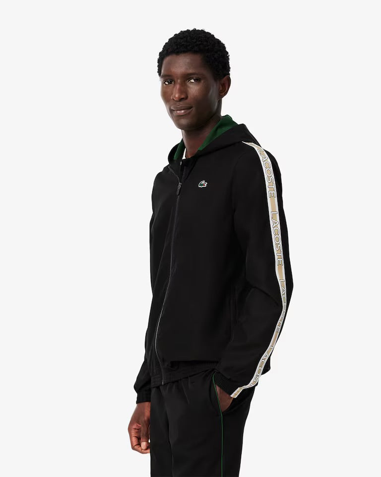 • Righe Lacoste lungo le maniche e fondo gamba con bordo a contrasto